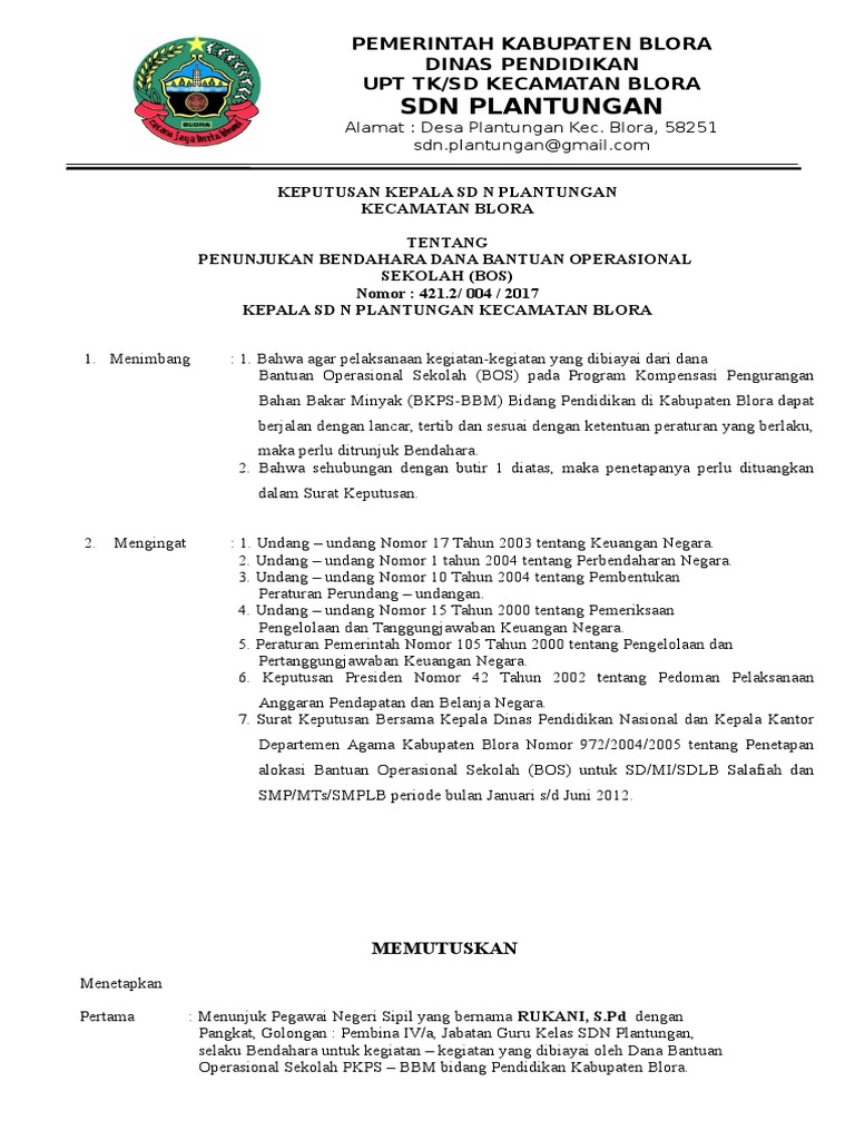 Sk Penunjukan Bendahara : Contoh Sk Bendahara Bos Kemdikbud Terbaru Tahun 2019 Bimbel Sekolah / Check spelling or type a new query.. We did not find results for: Maybe you would like to learn more about one of these? Check spelling or type a new query.